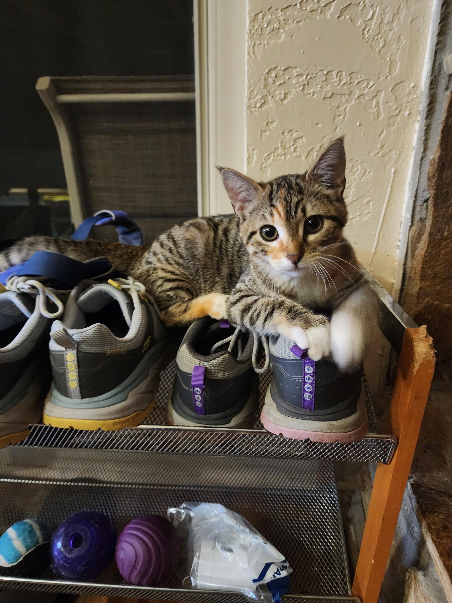 Meet Waffles & Honey( calico girl). They were born inside ~ 5/23/25. Their owner moved and dumped them outside. Both...