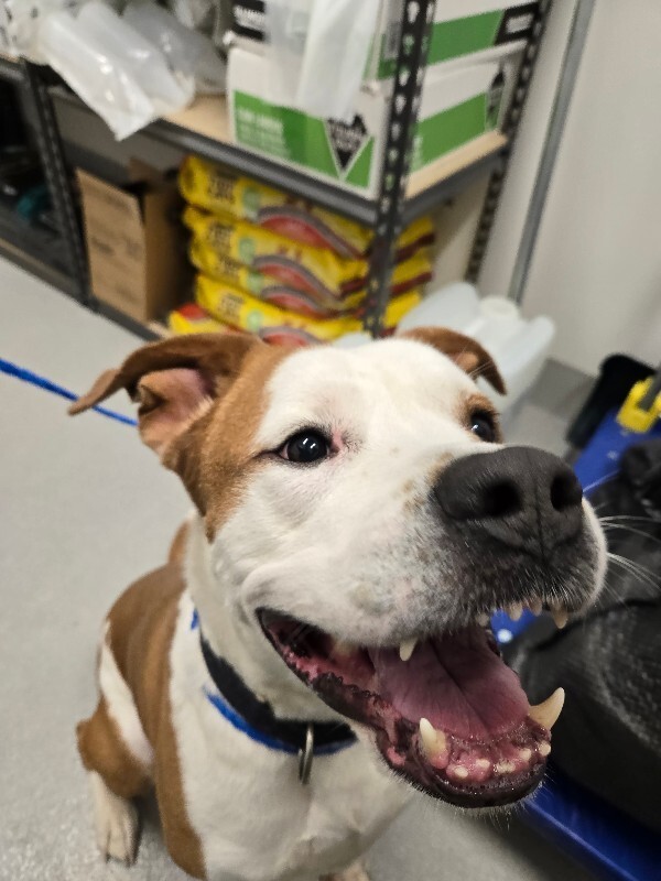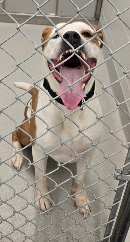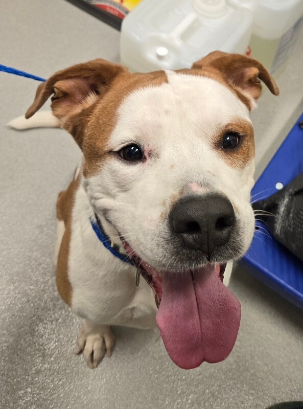 STATS: dob: 6/15/2023 weight: 50# breed/s: Pit Bull Mix energy level: Medium dog/kid/cat friendly: Dog-friendly, cats & kids unknown adoption...