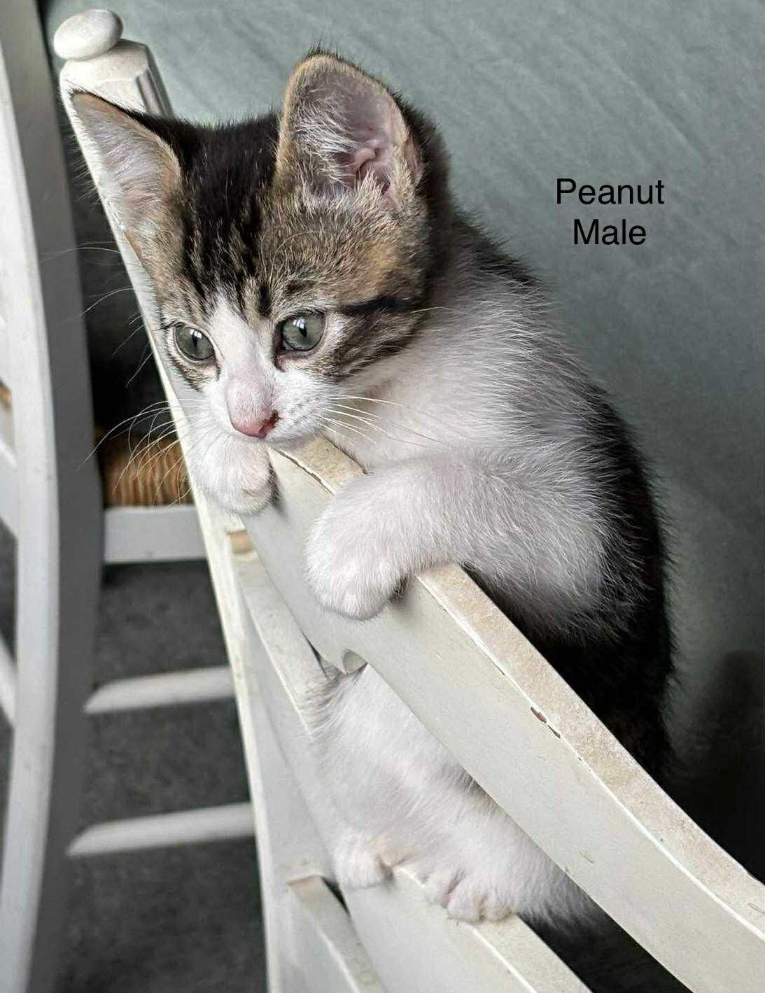 Peanut is a total snuggle bug and is always purring. He loves to play with his littermates, Pistachio and Pecan.